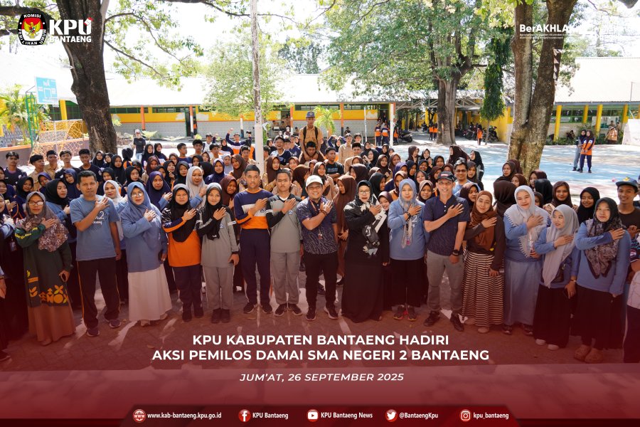 Bantaeng,-- Anggota KPU Kabupaten Bantaeng Divisi Sosialisasi Pendidikan Pemilih Partisipasi Masyarakat dan SDM, Aspar Ramli menghadiri Aksi Pemilos Damai di SMA Negeri 2 Bantaeng. Kegiatan ini menunjukan bahwa Pemilihan Ketua Osis (Pemilos) tahun ini memasuki masa tenang, kedua calon Ketua Osis di SMK Negeri 2 ini berkomitmen melaksanakan Pemilos dengan damai. Kegiatan ini mengusuung tema "Pemilih Cerdas Lahir dari Demokrasi Sehat". Dalam Sambutannya Aspar Ramli mengatakan, senin 29 September 2025 mendatang merupakan suatu momen paling penting dalam menanamkan nilai-nilai demokrasi yang sehat, damai dan berintegritas di kalangan pelajar. Ia menekankan Pemilos bukan hanya sekedar pemiliha Ketua Osis, melainkan wadah pembelajaran politik yang bermartabat dan mengedepakan nilai persaudaraan. "Hari ini kita bukan hanya memilih, tapi juga merawat persaudaraan. Mari buktikan, pemilihan damai adalah wajah pelajar berprestasi!," Ujar Aspar Aspar menambahkan, semangat demokrasi dilingkungan sekolah harus diiringi dengan nilai kebersamaan dan saling menghargai, apapun hasil dari proses pemilihan. "Osis kuat bukan karena siapa yang menang, tapi karena kita semua tetap bersatu dalam semangat kebersamaan," Katanya Dalam kesempatan tersebut, Aspar juga mengajak seluruh siswa/siswi untuk menjadikan Aksi Pemilos Damai sebagai bentuk kedewasaan dan kecerdasan berpolitik sejak dini. "Damai itu pilihan, persatuan itu kekuatan. Mari jadikan deklarasi ini bukti kedewasaan kita sebagai pelajar!” tegasnya. Kegiatan Aksi Pemilos Damai ini dirangkaikan dengan senam sehat bersama Kepala Sekolah, Guru dan Siswa/Siswi SMA Negeri 2 Bantaeng. ....