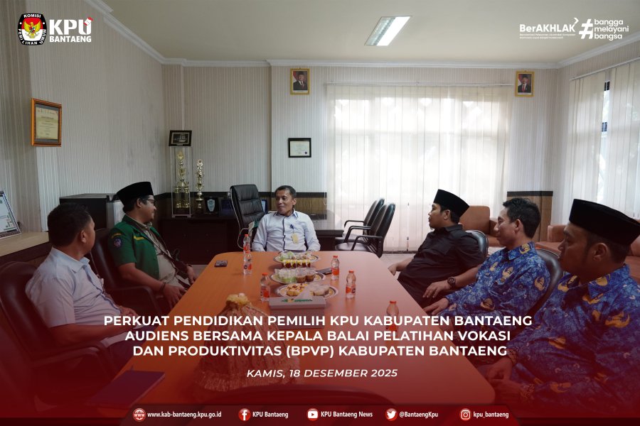 Bantaeng,-- Menjelang akan dilaksanakan kegiatan "KPU Mengajar", KPU Kabupaten Bantaeng melaksanakan Audiens bersama Kepala Balai Pelatihan Vokasi dan Produktivitas (BPVP) Kabupaten Bantaeng, Rabu(17/12/2025). Anggota KPU Kabupaten Bantaeng, Aspar Ramli mengatakan dalam rangka meningkatkan kesadaran dan partisipasi masyarakat dalam kehidupan demokrasi, kami (KPU Kabupaten Bantaeng) melaksanakan pertemuan yang membahas sinergi antara program pendidikan vokasi dengan pendidikan pemilih. Pertemuan ini menurutnya, menekankan pentingnya integrasi nilai-nilai demokrasi dalam proses pendidikan, khususnya bagi generasi muda dan kelompok produktif. “Melalui sinergi ini, kami berharap peserta pendidikan vokasi tidak hanya siap secara kompetensi kerja, tetapi juga memiliki kesadaran demokrasi yang kuat serta berpartisipasi aktif dalam setiap proses pemilu,” Kata Aspar. Aspar menambahkan, bahwa kolaborasi lintas sektor ini menjadi langkah konkret dalam menciptakan pemilih yang cerdas dan berintegritas. “Pendidikan pemilih yang terintegrasi dengan pendidikan vokasi akan memperluas jangkauan sosialisasi dan memperkuat partisipasi masyarakat secara berkelanjutan,” ucap Aspar. Sementara itu, Kepala BPVP Kabupaten Bantaeng Arsad menyambut baik atas kedatangan KPU Kabupaten Bantaeng melakukan audiens secara langsung, menurutnya lembaga pendidikan vokasi memiliki peran strategis dalam membentuk karakter, keterampilan, serta wawasan kebangsaan peserta didik, termasuk pemahaman tentang hak dan kewajiban sebagai pemilih. "Pendidikan pemilih penting untuk ditanamkan sejak dini, agar lahir pemilih yang cerdas, kritis, dan bertanggung jawab," Kata Arsad Dalam pertemuan tersebut disepakati bahwa pendidikan vokasi tidak hanya berfokus pada peningkatan keterampilan kerja, tetapi juga menjadi sarana strategis untuk menanamkan pemahaman tentang hak dan kewajiban sebagai warga negara. Pendidikan pemilih dipandang sebagai elemen penting dalam membangun masyarakat yang sadar politik, kritis, dan bertanggung jawab. Dari hasil audiens ini, maka KPU Bantaeng akan melakukan penandatanganan MoU bersama BPVP Kabupaten Bantaeng terkait Pendidikan Pemilih Pemula, yang akan dilaksanakan secara seremoni dalam waktu dekat. asrllsym ....
