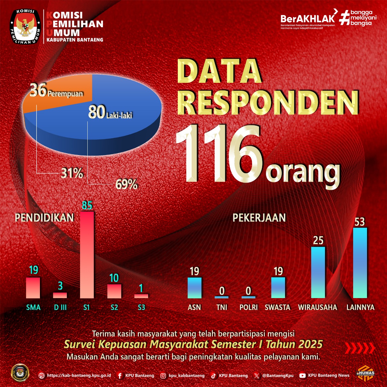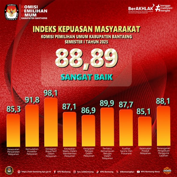 #TemanPemilih, Berikut capaian Indeks Kepuasan Masyarakat KPU Kabupaten Bantaeng Semester I Tahun 2025.