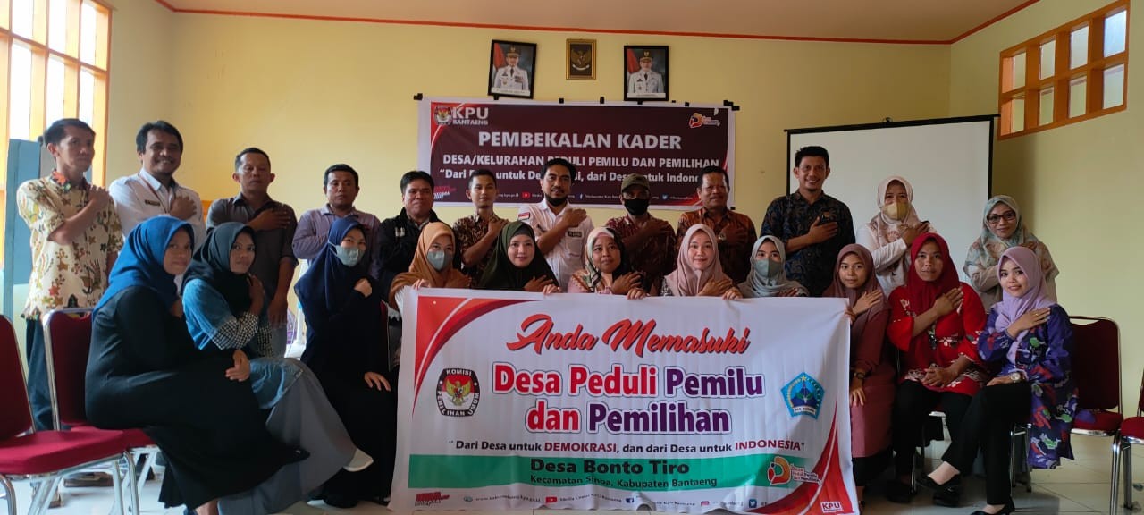 Kegiatan pembekalan diakhiri dengan pengukuhan oleh Ketua KPU Kab. Bantaeng sekaligus membentangkan spanduk selamat datang di Desa Peduli Pemilu dan Pemilihan, sebagai penanda bahwa Desa Kampal menjadi penanda pilot project Desa Peduli Pemilu dan Pemilihan.