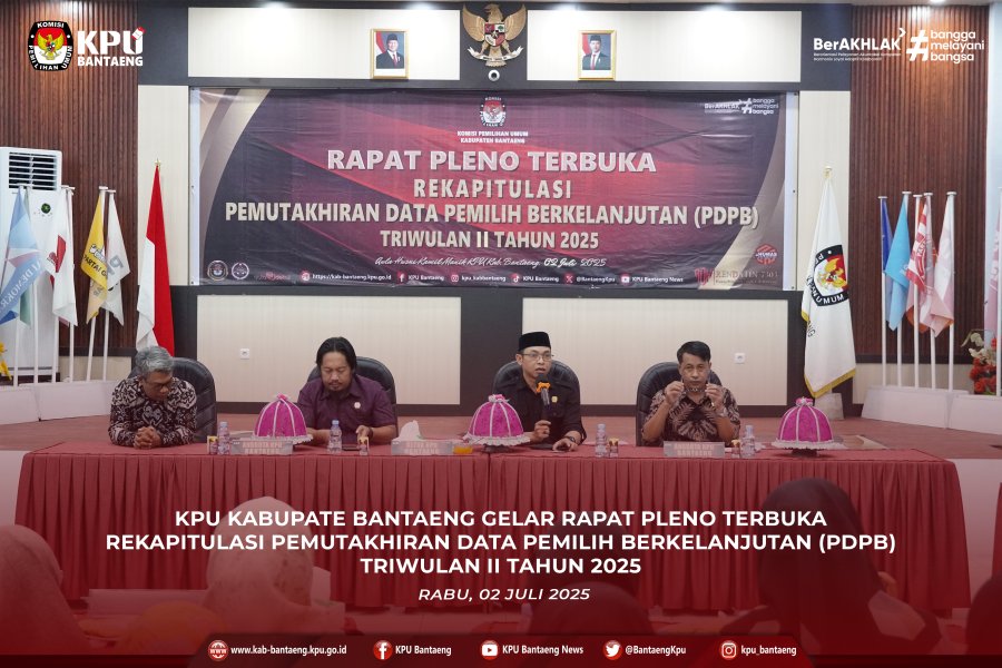 Bantaeng,-- Komisi Pemilihan Umum (KPU) Kabupaten Bantaeng menggelar Rapat Pleno Terbuka Pemutakhiran Data Pemilih Berkelanjutan (PDPB) triwulan II Tahun 2025, Rabu,(02/07/2025) di Aula Husni Kamil Manik Kantor KPU Kabupaten Bantaeng.