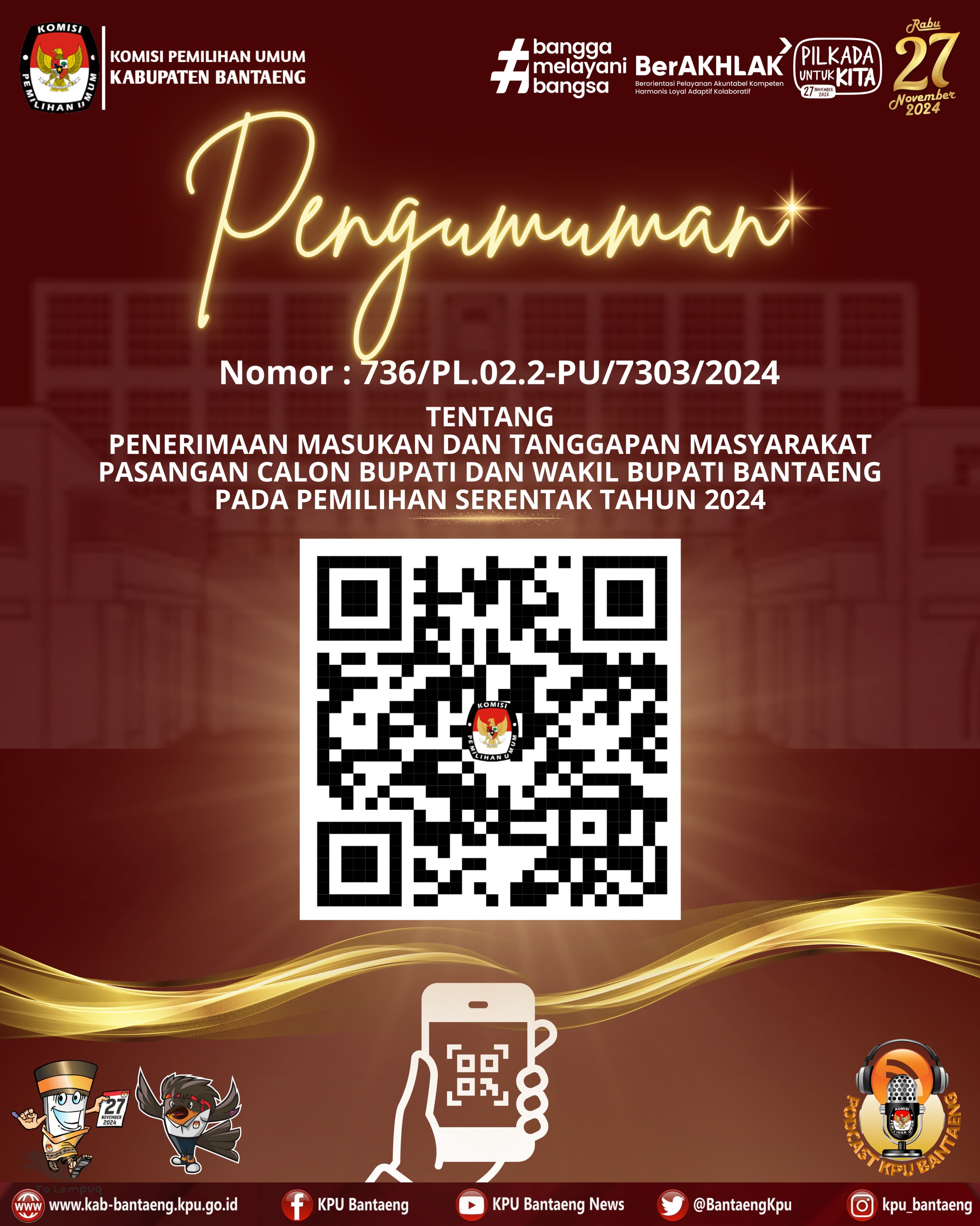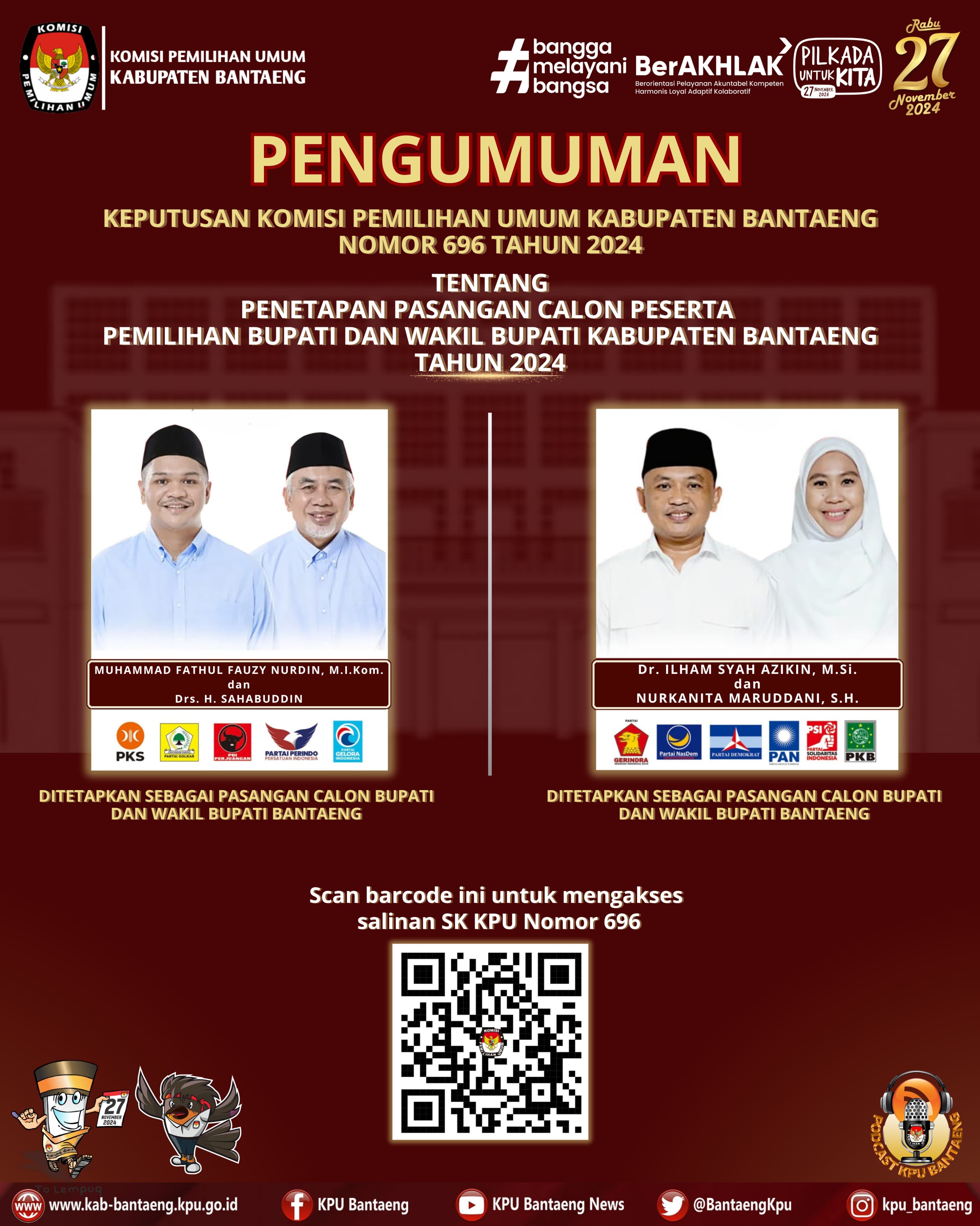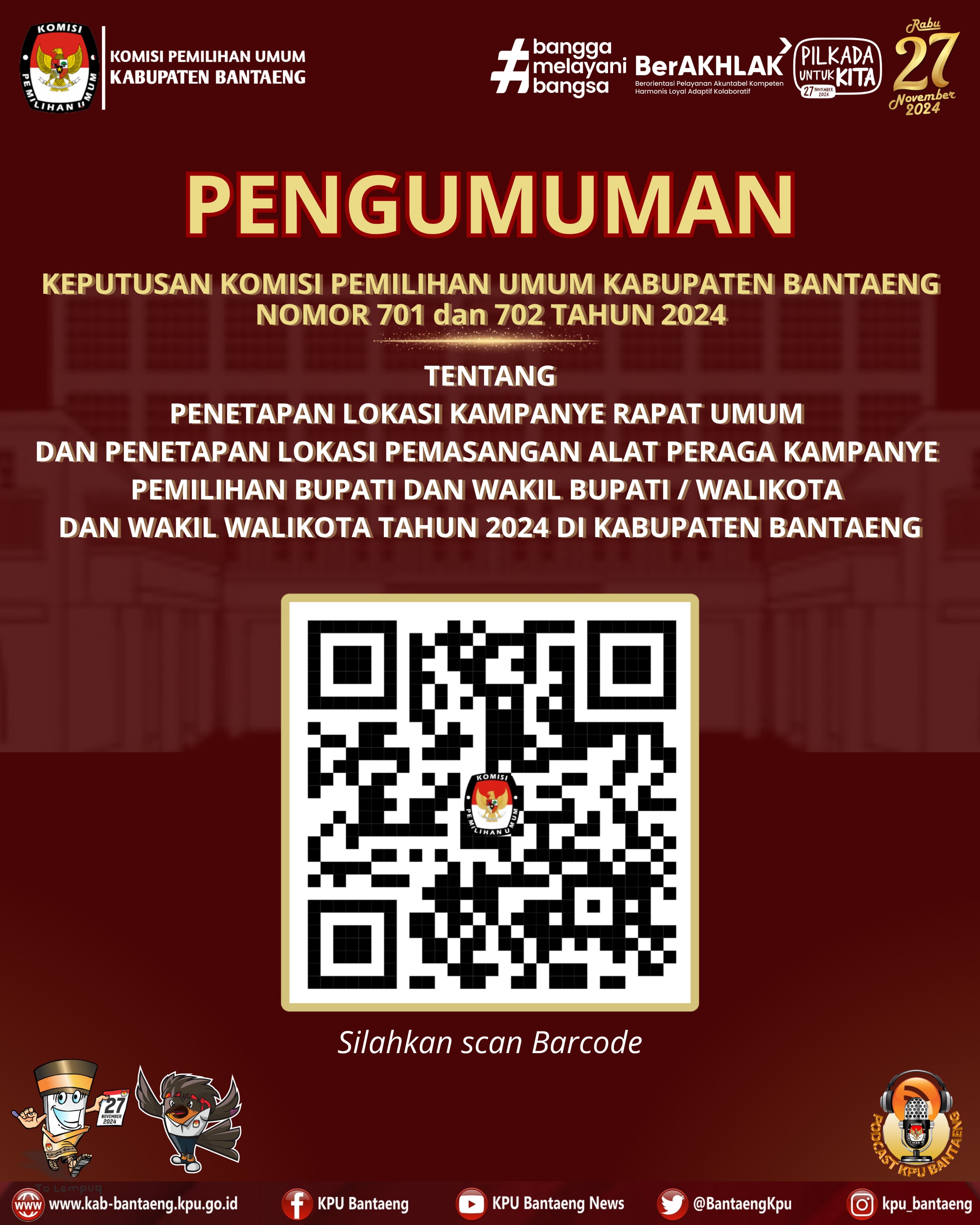 #TemanPemilih, berikut Keputusan KPU Kabupaten Bantaeng Nomor 701 dan 702 Tahun 2024, tentang Penetapan Lokasi Kampanye Rapat Umum dan Penetapan Lokasi Pemasangan Alat Peraga Kampanye Pemilihan Bupati dan Wakil Bupati / Walikota dan Wakil Walikota Tahun 2024 di Kabupaten Bantaeng.