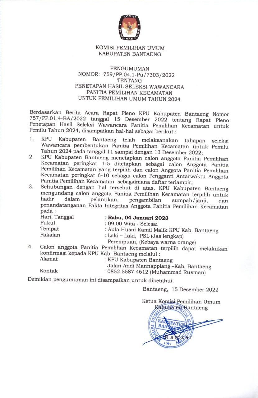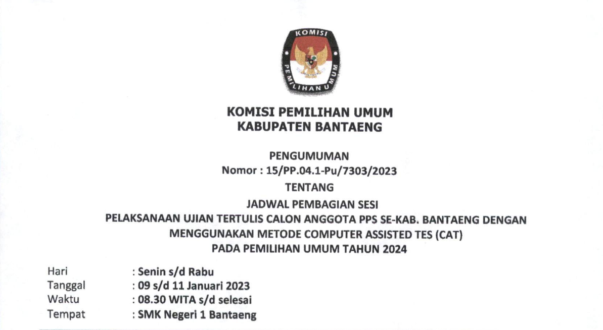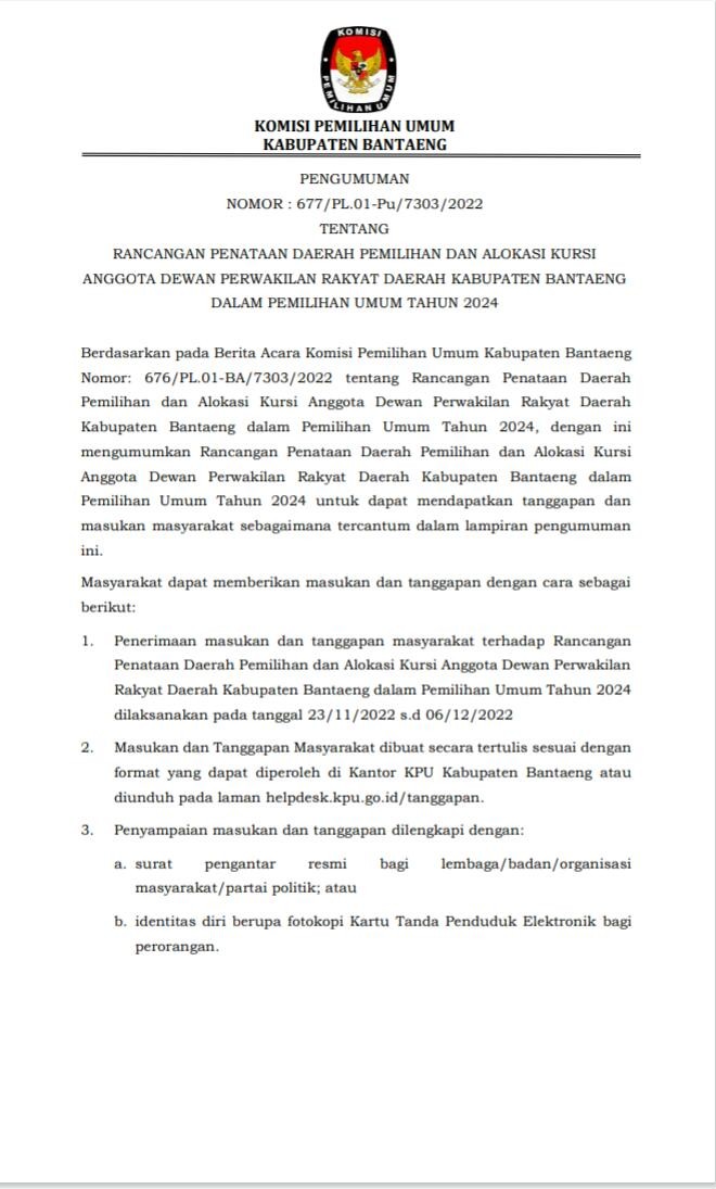 Masukan dan tanggapan masyarakat mulai tanggal 23 November sampai 6 Desember 2022 mulai pukul 08.00 s/d 16.00 WITA, format tanggapan juga disiapkan di Kantor KPU Kabupaten Bantaeng.